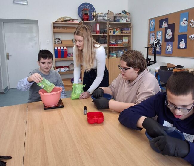 U srijedu, 18.02., održana je radionica izrade pjenušavih kupki od prirodnih materijala u Osnovnoj školi Josipa Matoša Vukovar. Rad s učenicima bio je jedno posebno iskustvo. S puno pažnje, truda i međusobne podrške učenici su miješali sastojke i dodavali mirise te pažljivo oblikovali svoje kupke u kalupe. Savladili smo kako se pravilno mjeri i sigurno…