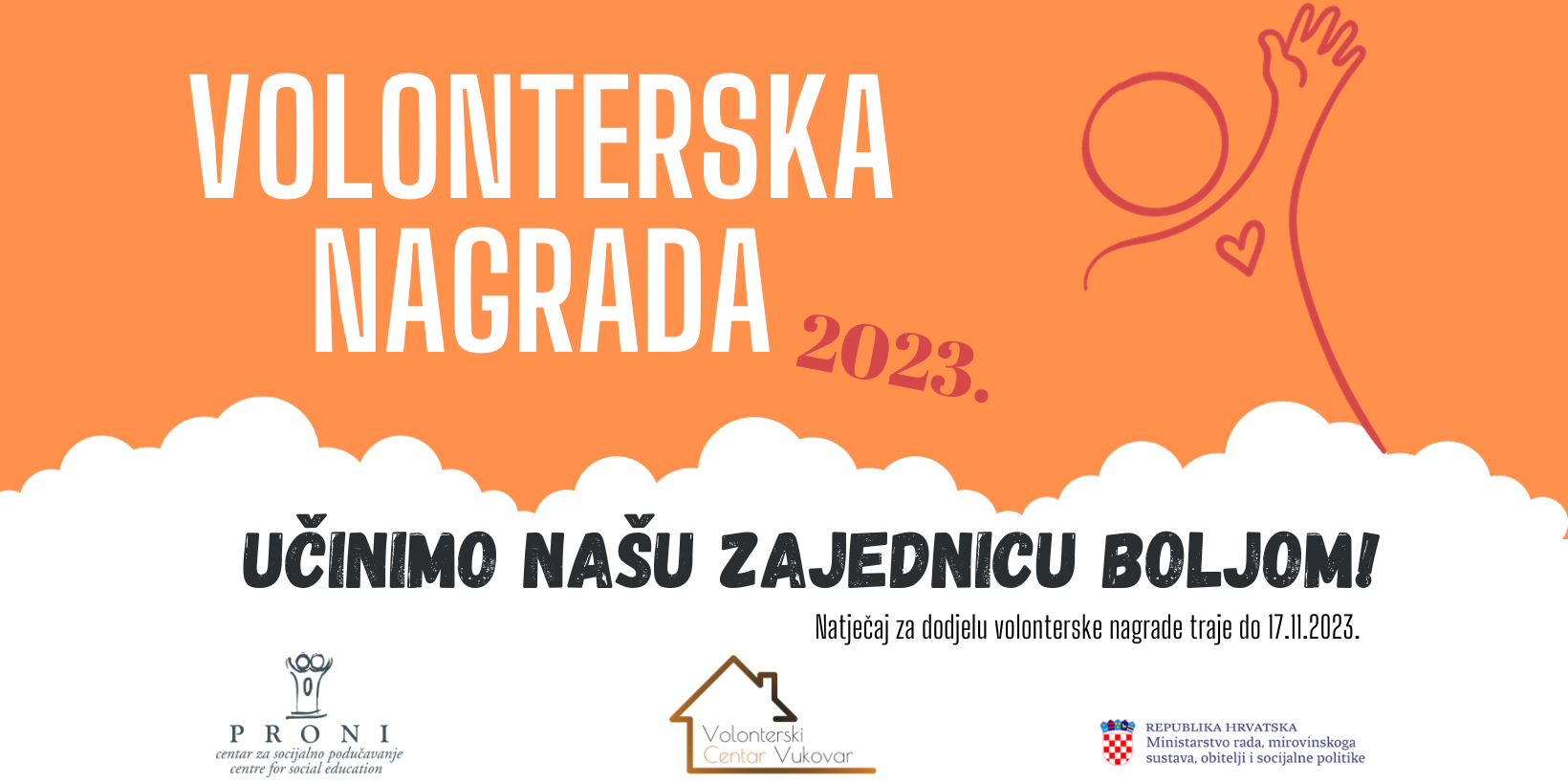 - NATJEČAJ ZA DODJELU VOLONTERSKE NAGRADE ZA 2023. pod sloganom “Učinimo našu zajednicu boljom!”
