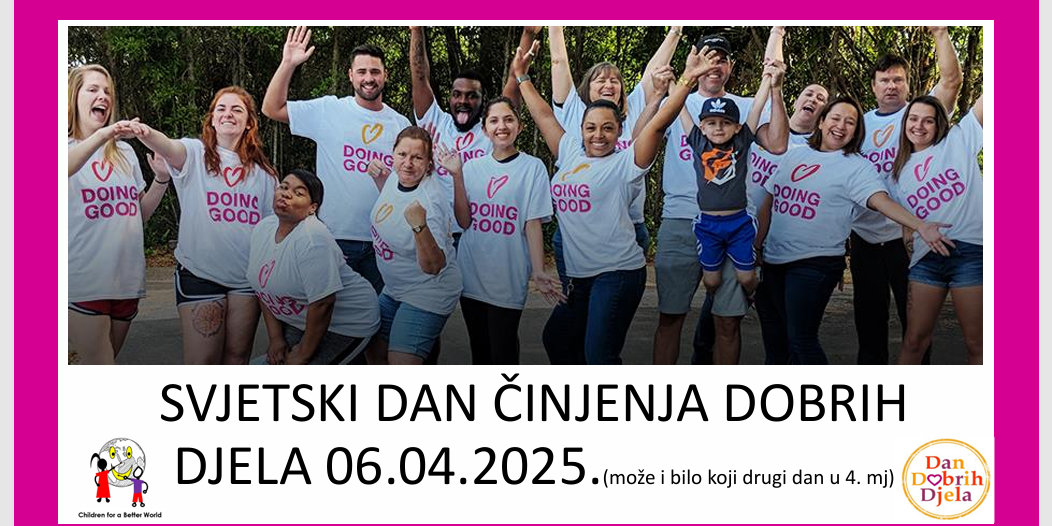 I ove godine udruga Djeca za bolji svijet poziva na obiježavanje Svjetskog dana činjenja dobrih djela u vašoj lokalnoj zajednici, kada će u više od 110 zemalja svijeta, preko 5 milijuna ljudi također činiti razna dobra djela.