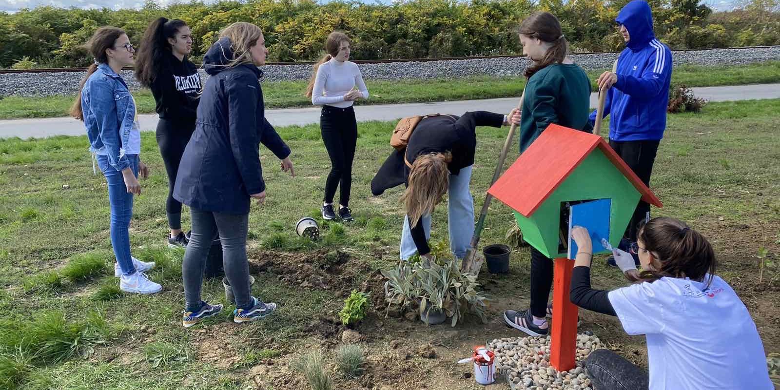 Učenici Srednje strukovne škole Marko Babić i Tehničke škole Nikole Tesle iz Vukovara, djelatnici PRONI Centra te domaći i međunarodni volonteri farbali su kućice i pomagali oko sadnje.