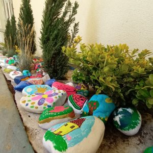 Poseban doprinos ovoj eko akciji dali su i drugi učenici ove Škole oslikavanjem kamenčića koji su dio ovog ukrasnog pejzaža.